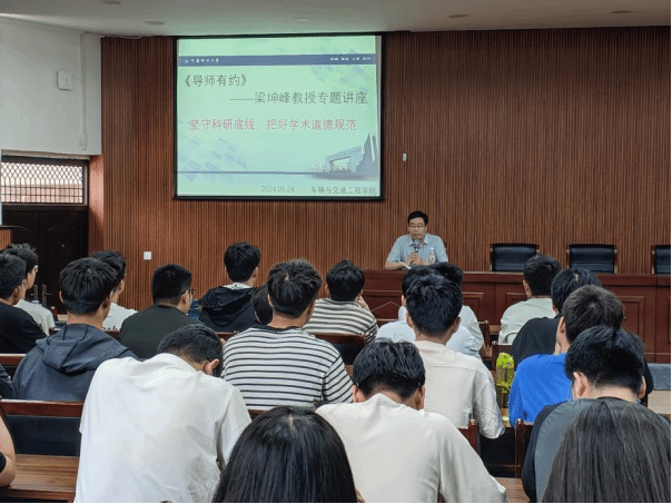 为了加强科研诚信建设,提高研究生的学术道德水平,推动科研工作的健康发展,5月24日下午,由党委研究生工作部主办、2138acom太阳集团承办的第140期《导师有约》在西苑校区6号楼101会议室举办。本次活动邀请车辆学院博士生导师梁坤峰教授为我校研究生作题为“坚守科研底线,把好学术道德规范”的专题讲座,全校研究生代表参加讲座。讲座由车辆学院研究生会副主席侯家兴主持。